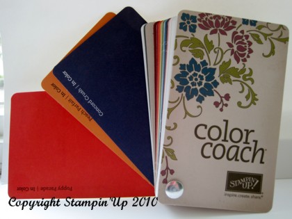 I am playing along with the Stampin’ Royalty challenge this week. It is called “Seeing Doubles” Challenge 26, so here we go. I wasn’t sure which of the new In Colors to use so brought out the brand new Stampin’ Up Color Coach for help. This new tool is wonderful, it gives all sorts of color combinations on the back of each page, so you have lots of choices.