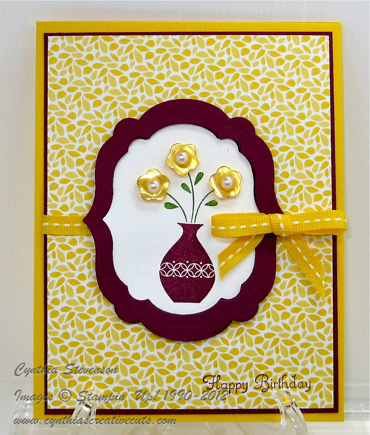 Accessories: Stampin’ Write Markers – Daffodil Delight(119677), Gumball Green(2012-2014 InColor 126856), Big Shot(113439), Framelits Labels Collection(125598), 1/4″ Daffodil Delight Stitched Grosgrain Ribbon(126872), Designer Brights Collection Buttons(119747), Basic Pearls(119247), Snail Adhesive(104332), Stampin’ Dimensionals(104430), Glue Dots(103683), Simply Scored Scoring Tool(122334)