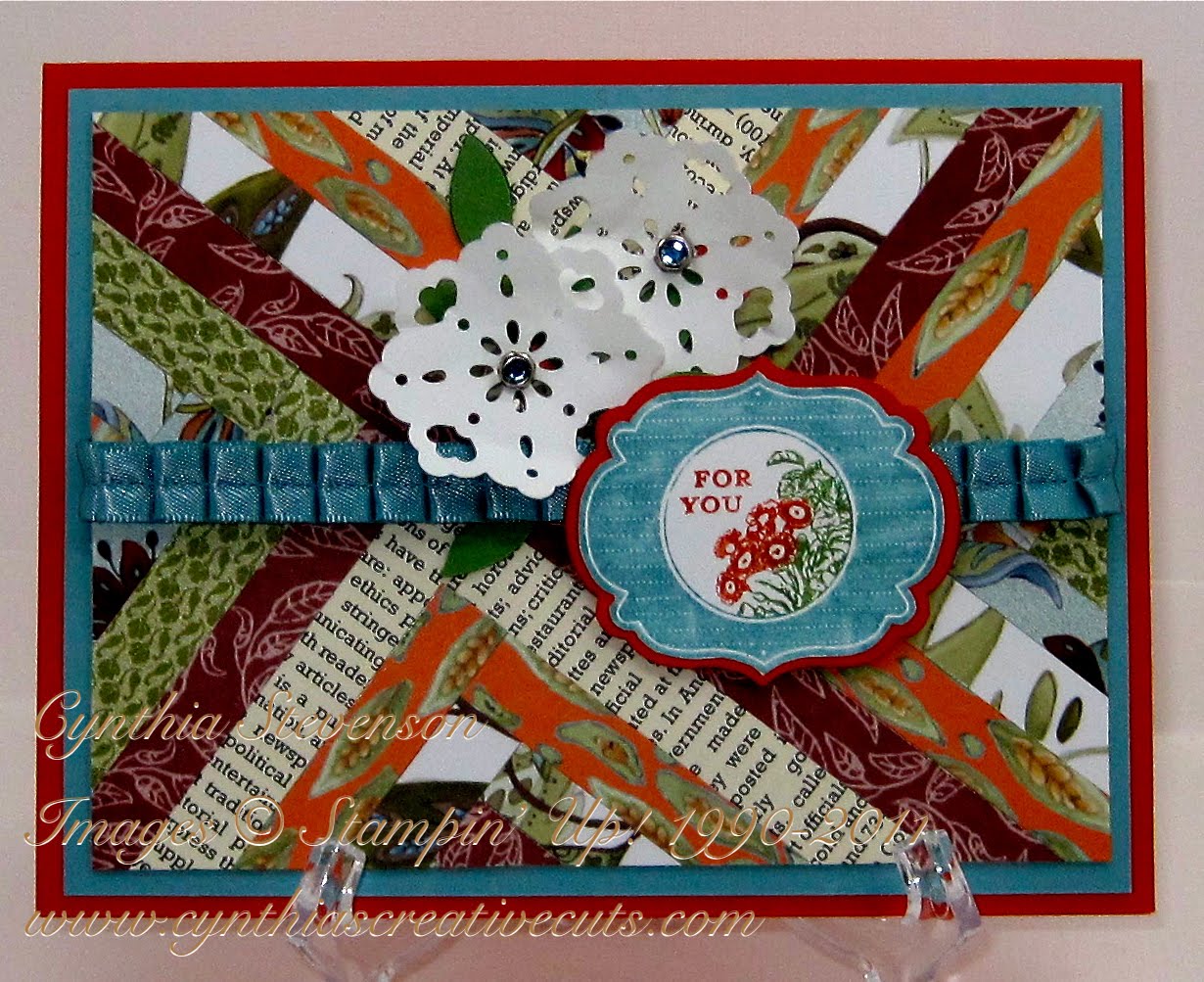It went together so easily and looks great! I received my pre-order(a Demonstrator perk!) and just had to play. Can you see all the new items on this card? Pleated ribbon in new colors is one – so pretty!