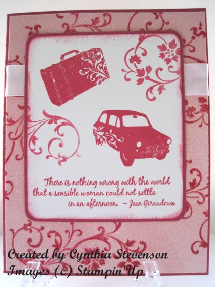 I love the sentiment and the suitcase and car add to the thought that you, the Stampin’ Up Demo, is on her way for an afternoon of stamping fun.
