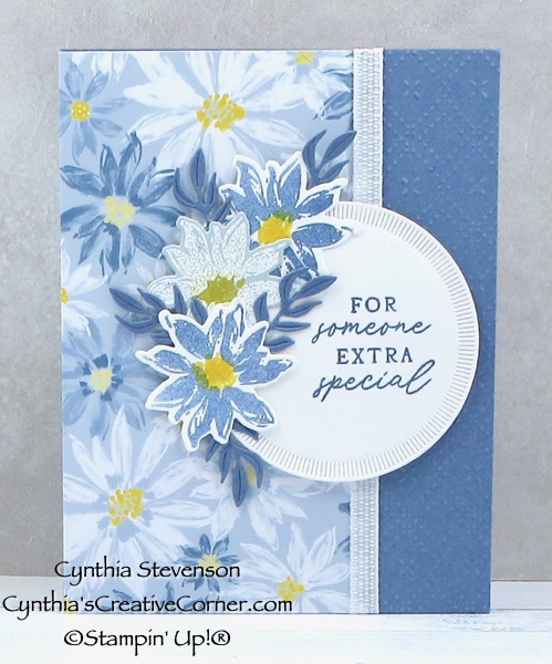 There are 10 single-sided designs in this 6″x6″ designer paper and these blue and white flowers drew my eye for today’s card. The stamp set included with this 12 Days of Crafting Advent Calendar(167335) has all of the images and sentiments you need to create pretty cards all year long.