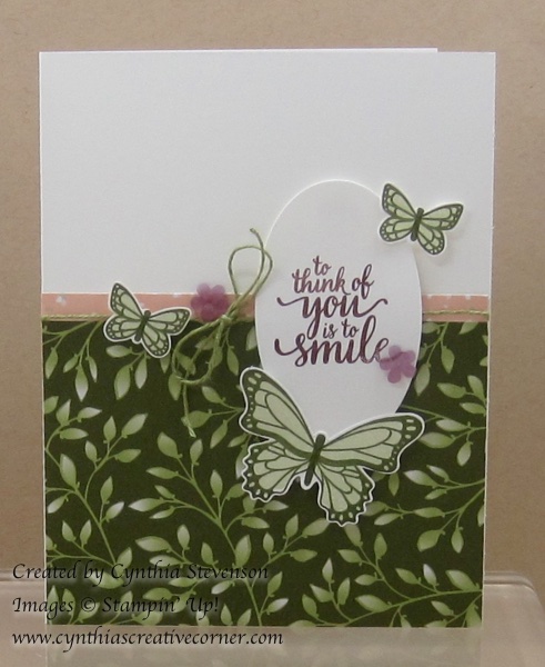 There’s nothing like a few butterflies to bring smiles to one’s face, don’t you think? Today’s card has a definite spring feel to it with those pretty butterflies!