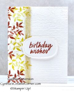 Hi, today I’m sharing a clean and simple card that features autumn coloured leaves. I pulled out the Textured Notes stamp set(165548) for the assortment of leaves and backed it […]