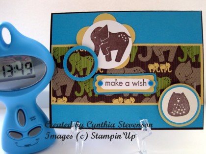 It’s Friday and time for the 10 Minute Challenge with the Stamp-a-Holics! It was my turn to submit a challenge sketch for this week and here it is. Talk about a challenge – it took 3 tries to get to this card! LOL. I decided that the KISS (Keep It Simple Sweetie) technique would help and simple means Kid to me. So I brought out Animal Stories and A Little Birthday Cheer for this one.