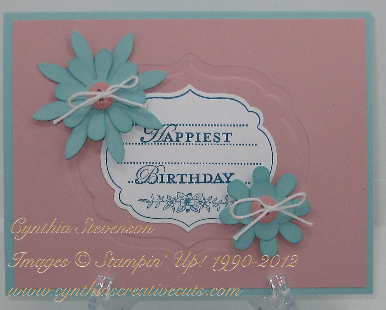 I was in the mood to create some flowers and thought that Pool Party was a great color to do that. Combined with Blushing Bride and Whisper White it makes a lovely and soft birthday card.