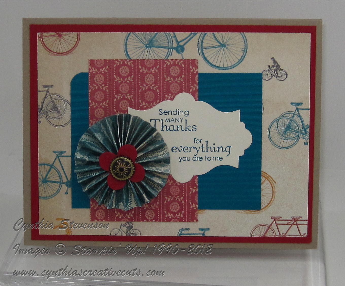 Rosettes are something that I rarely create, but this one turned out quite nicely and stayed together well with a dollop of Crystal Effects in the center to hold the rosette and brad together. It works great!