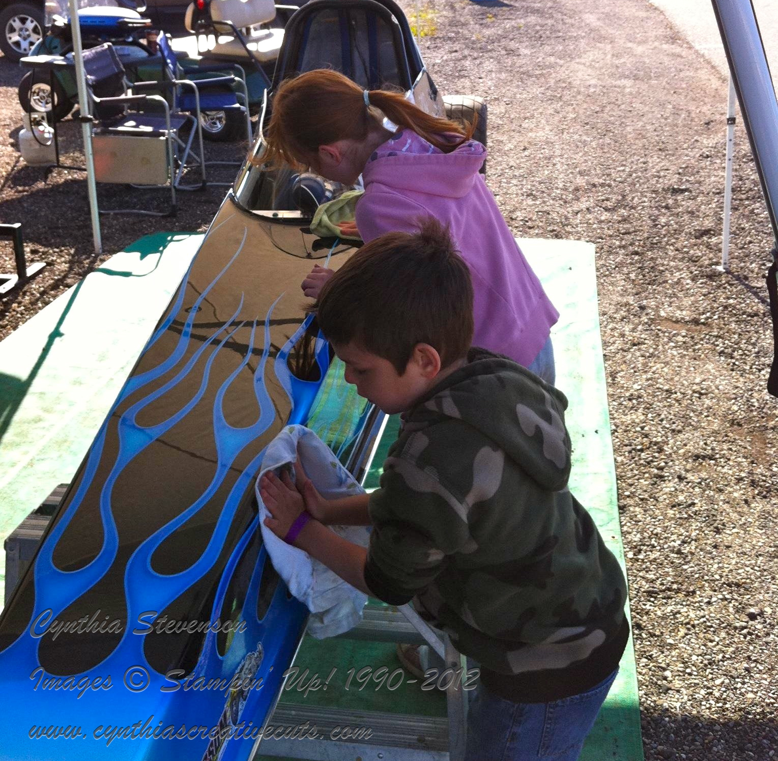 Good Monday morning and I hope you all had a wonderful weekend! Our whole family was at the drag race track having our fill of noise and speed! Jayden and Isabella are learning the sport and willingly lend a hand to keep their car looking it’s best.