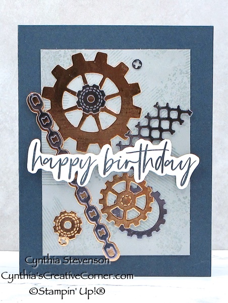 I love the gears and textures and this card you created is just great! The metallics look great against the neat Smoky Slate background you created!thanks for the inspiration!
