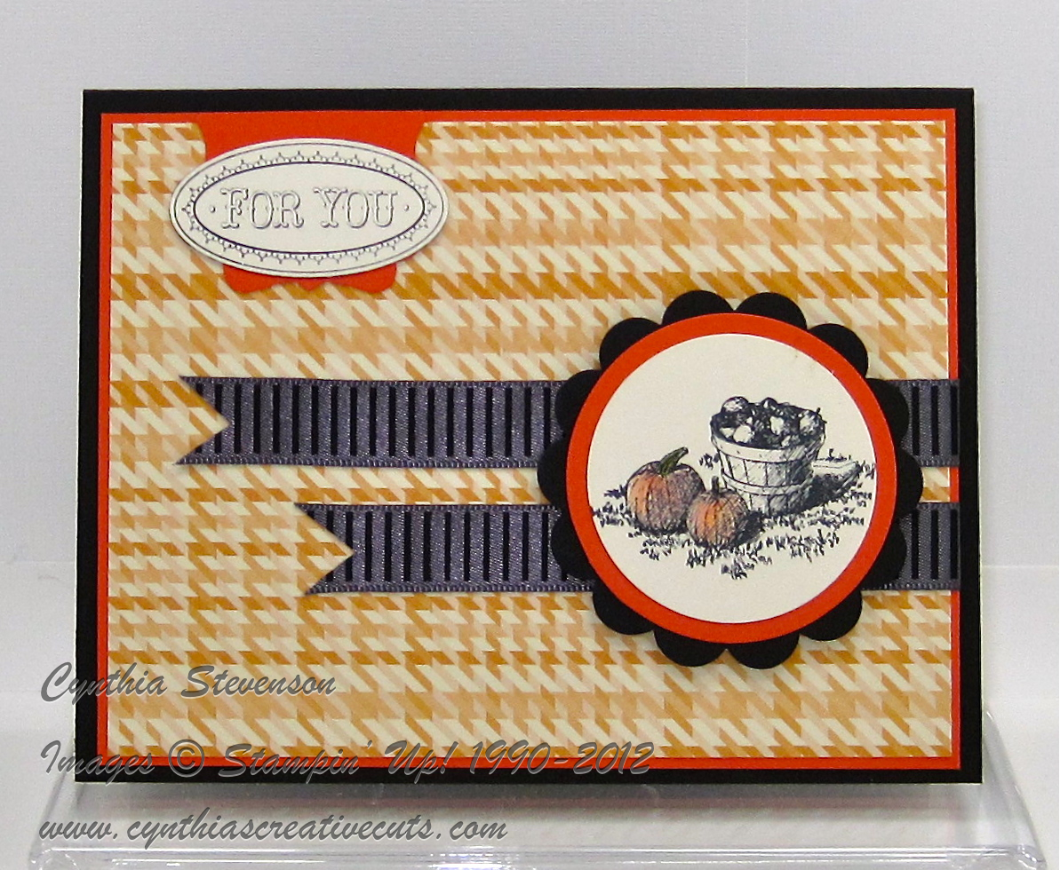 Hi there – here’s another card using Howlstooth & Scaringbone designer paper (He, he, just love that name!) and some wonderful new ribbon from the Holiday Catalogue.