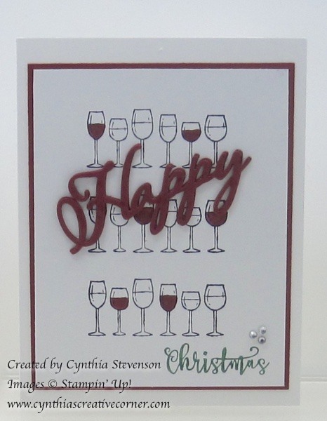 Of course, now that we have Merry Merlot in our colour line-up the wine simply has to be a nice Merlot as well. I also wanted the word “happy” to stand out so cut 4 and layered them using our fabulous Fine-Tip Glue Pen.