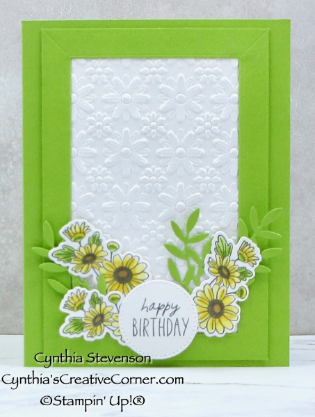 There we go, the perfect bright and sunny card for a snowy day. I used the daisy image in the Lifetime of Love stamp set(162574) and cut them and some leaves out with the matching Dies(162583).