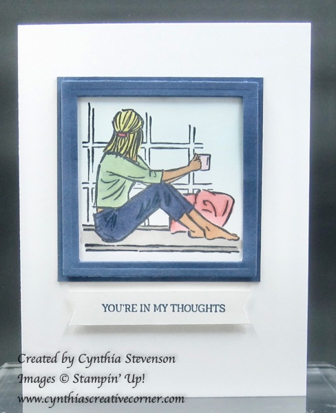 I coloured that person looking out the window with an assortment of Stampin’ Blends and added the skin colour from the Natural Tones Stampin’ Blends(160940) that are an available extra with the All Together collection until May 2, 2022.