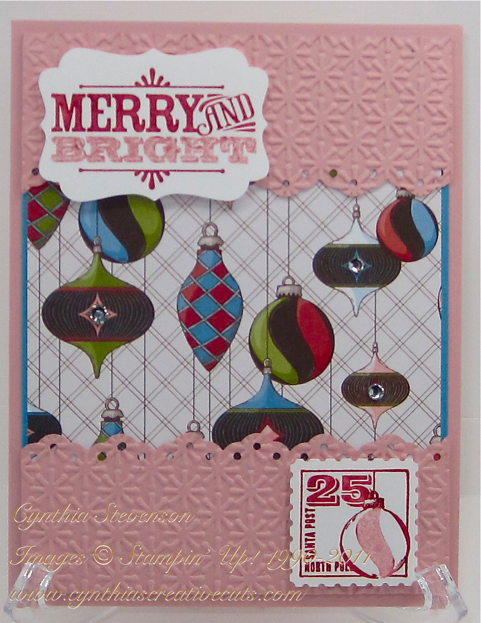 Isn’t the designer paper pretty? This is just one of the selections from the “Letters to Santa” package and I just love those ornaments. I added some Basic Rhinestones to three of them, just because.