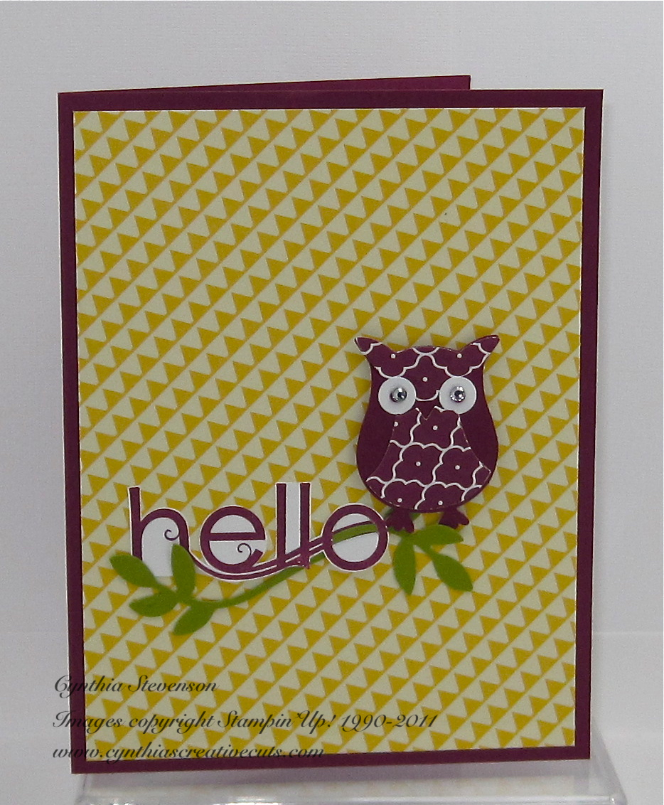 Welcome and I hope you had a great weekend. We are in a brand new month and can welcome a brand new product suite from Stampin’ Up! called “Summer Smooches” and boy is it ever bright and cheerful and fun to work with! It just makes me smile! I incorporated the New designer paper into this card to give the little owl a bright and sunny background.