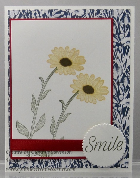 Such a pretty card, Cynthia! I LOVE the red mat and ribbon. They set off the daisies perfectly. The “smile” sentiment is so sweet. This is a great layout. Thank you for sharing with The Paper Players this week!