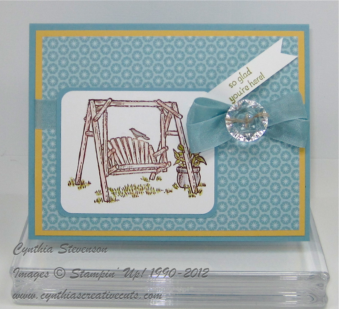 Good day to you and thank you for visiting today. Have you noticed that the summer sun seems just a bit softer lately? It’s a reminder that fall is just around the corner so I choose to feature a great Hostess set – Summer Afternoon – for today’s card.
