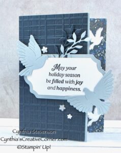 Hi. Today I’m combining red and blue for a sweet Christmas greeting card. The background pattern is from the Peaceful Garden designer series paper(165917) with a half oval cut from […]