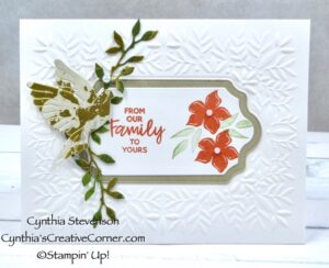 Hi and welcome. Today’s card has a Christmas theme but with slightly different colours. I used the Christmas Greenery stamp set(165870) for the flowers and stamped them in Calypso Coral […]
