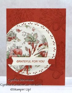 Hi. Today’s card is another with the grateful theme all done up in bright Cajun Craze cardstock! I followed along with the colours in the Autumn Toile designer series paper(165882) […]