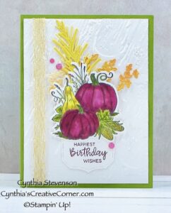 Hello and welcome. Today’s card blends pink and purple together for a sweet birthday greeting. The Floral Charm designer series paper(166125) has shades of purple(Blackberry Bliss) and pink(Pretty in Pink) […]