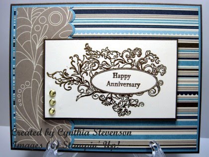 I used a sketch provided by SUDSOL(Simply Unique Demonstrators Sharing Online) as my starting point and pulled out the Elegant Soiree Designer Series paper and used the Elizabeth stamp for the first time. I love it’s simple elegance – it’s perfect for this card!