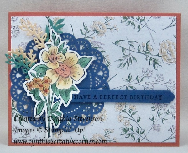 Beautiful, Cynthia! The doily is a wonderful backdrop for the perfectly colored flowers. I love the paper you used. Someone will be very happy receiving this card on their birthday! Thank you for playing with The Paper Players this week!