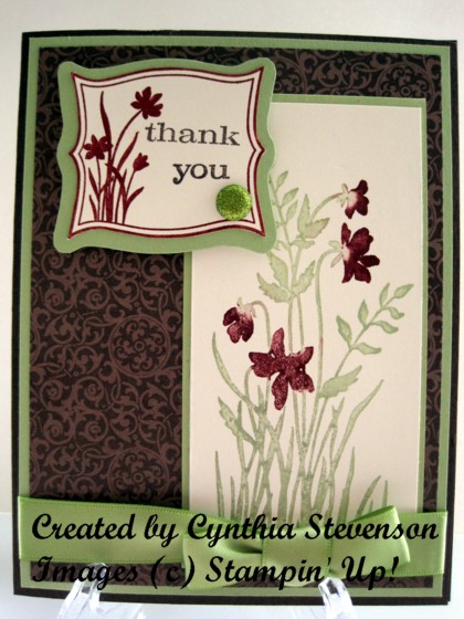 The mat for the sentiment was made by tracing around the shape of the stamp and then cutting it out with paper snips. This is very easy to do if you use Stampin’ Up!’s Clear-mount stamps. It gives a great matching shape if you don’t have the matching punch.