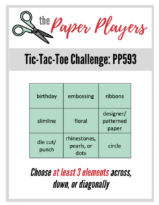 This is to play along with The Paper Players new Tic-Tac-Toe challenge this week. I hadn’t done a slimline card in a while, so that’s why I chose that line on the challenge.