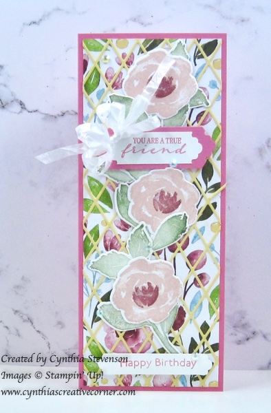 So, when creating a birthday card for a true friend, it seemed appropriate to use the True Beauty Bundle(1588984) together with the Awash in Beauty designer paper(158973).