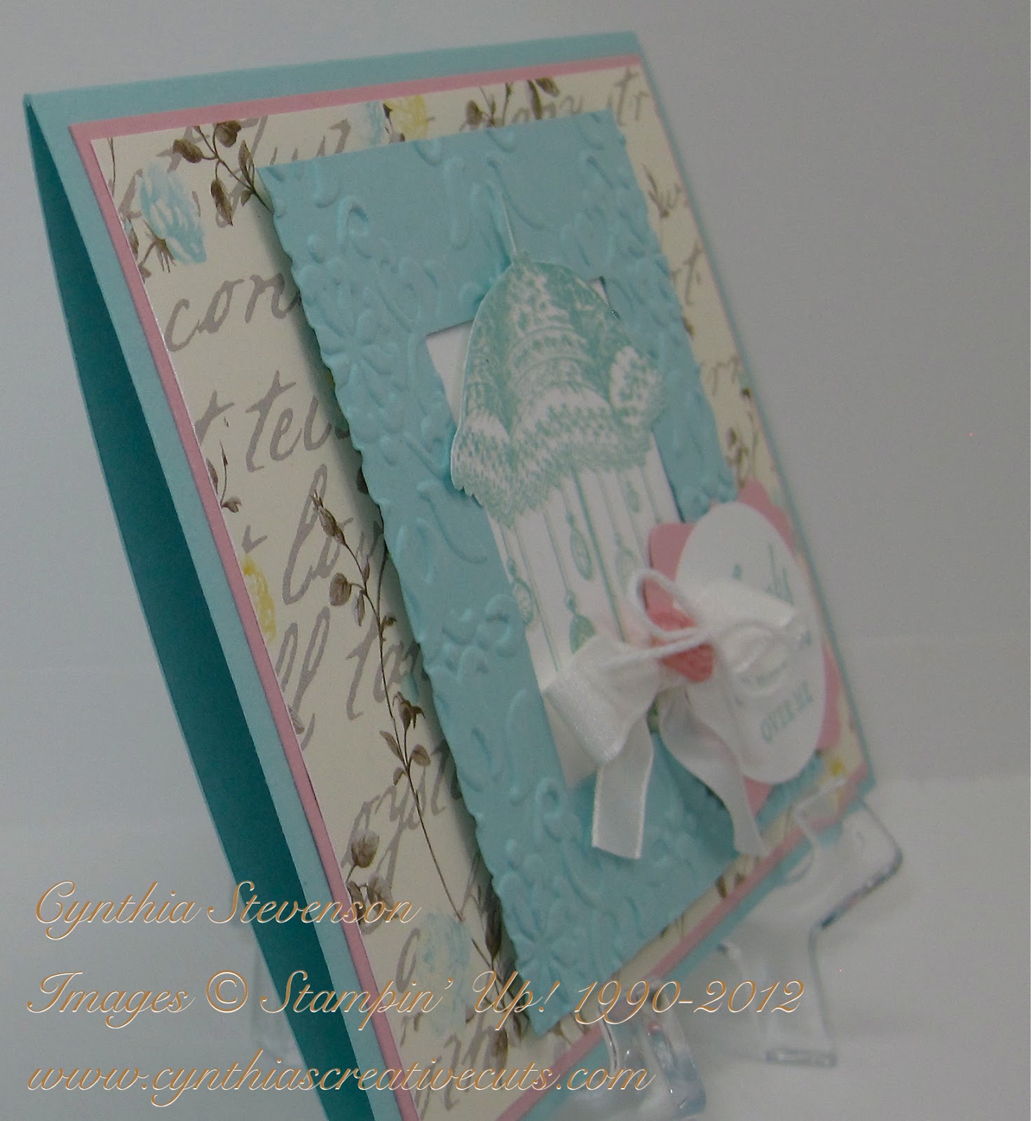 Accessories: Big Shot(113439), Vintage Wallpaper Embossing Folder(120175), XL Oval Punch(119859), 1-3/8″ Square Punch(119877), Decorative Label Punch(120907), Heat Tool(100005), Clear Emboss Powder(109130), Twitterpated Designer Buttons(125579), Whisper White Baker’s Twine(124262), 3/8″ Whisper White Taffeta Ribbon(109070), Mini Glue Dots(103683), Stampin’ Dimensionals(104430), Snail Adhesive(104332)