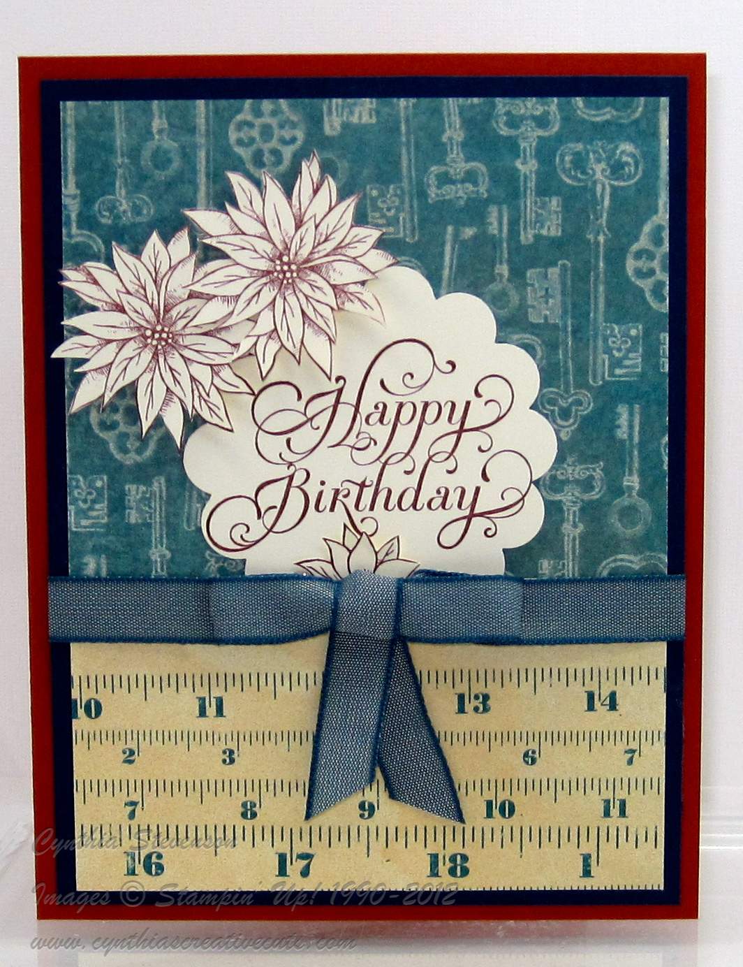 Can you guess which stamp set I used for the flowers? They were stamped in Bravo Burgandy and cut out with paper snips. Yup, each one! Have you guessed yet? They are from Bells & Boughs(page 20 Idea Book). They did involve some “fussy” cutting but I think they look great popped up on the greeting circle.