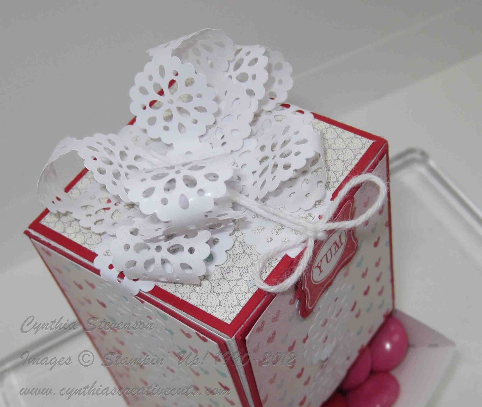 Today, was definitely NOT unpacking day, today was a stamping day! I have this cute little treat box to show you that was originally intended as a Valentine post but I am showing it to you today because it would make a great table favour at a wedding!