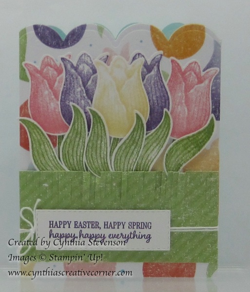 The Timeless Tulips Bundle played the starring role here with a background of the Pleased As Punch Designer paper, and I couldn’t be happier with the outcome.